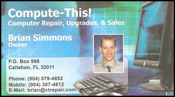 Compute-This! is your full service computer business, offering computer repair, computer upgrades, computer sales, and much more. Since 2003 Compute-This! has been serving customers in Callahan, Florida and surrounding areas. Our goal is to offer affordable, friendly service while catering to all of your technology needs. Our well-trained staff is always willing to assist you with any computer related problem that you may encounter. In addition we will assist you with upgrading your current computer or helping you make a selection for a new one. Don’t let your computer problems get you down, say ‘Compute-This!’, and call us today at (904) 879-4652.